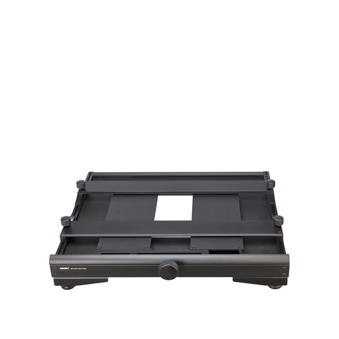 The Cambo RPS-500 Film Stage enables fast and reliable film positioning. Its stable frame is made out of aluminum and comes with four leveling feet. The integrated, adjustable, geared masks minimize flare and are effortlessly positioned by turning the large knob facing the operator. This ensures compatibility with Cambo's own and a broad range of 3rd party Film Holders.