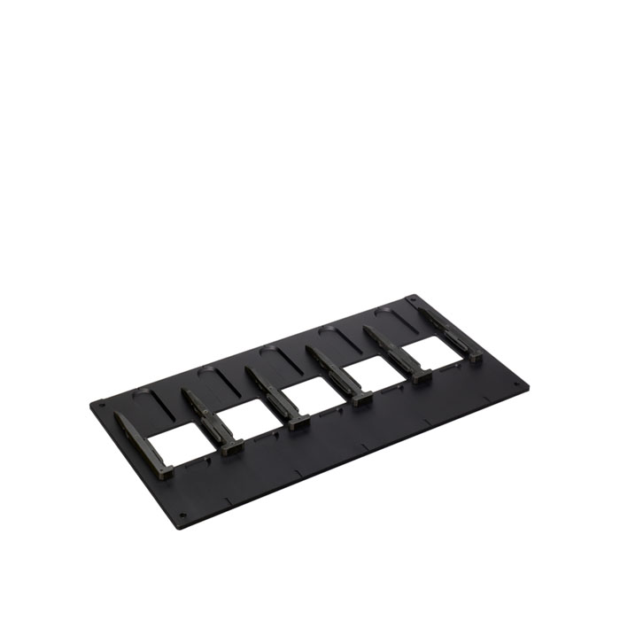 Holder for 5 framed 35mm slides. Designed for the Cambo RPS-500 Film Scanning Stage. Featuring an AN Glass bottom plate, enabling maximum sharpness.