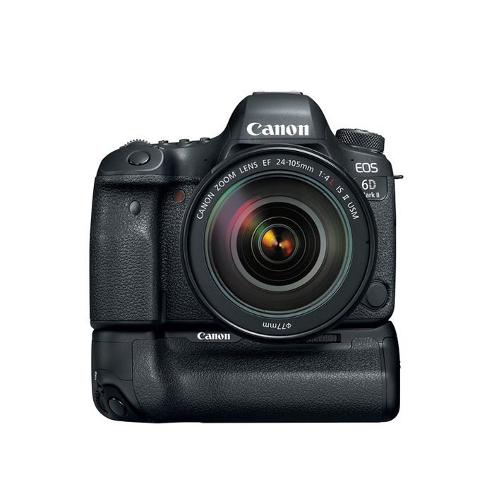 The battery grip has a durable construction to match that of the 6D Mark II and is both dust- and water-resistant. Additionally, it features a camera alignment pin hole for use with certain video heads and quick release plates.