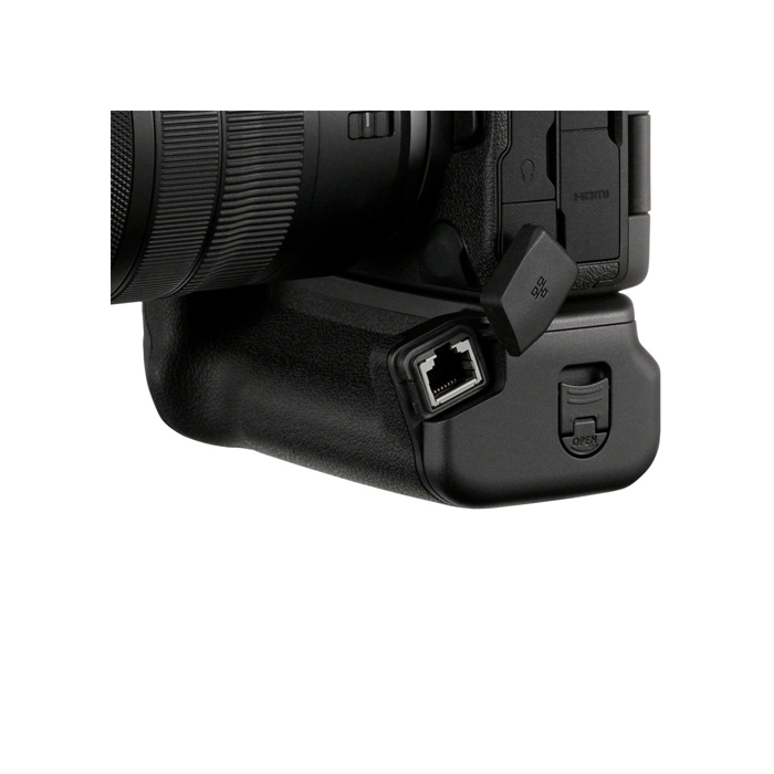 Et batterigreb der forbedrer håndteringen ved optagelse i portrætformat. Den optimerede balance og forbedrede position for kontrollerne/knapperne forbedrer den vertikale betjening. BG-R20EP tilføjer også en 2.5G Base-T Ethernet-port til kablet netværksforbindelse.
