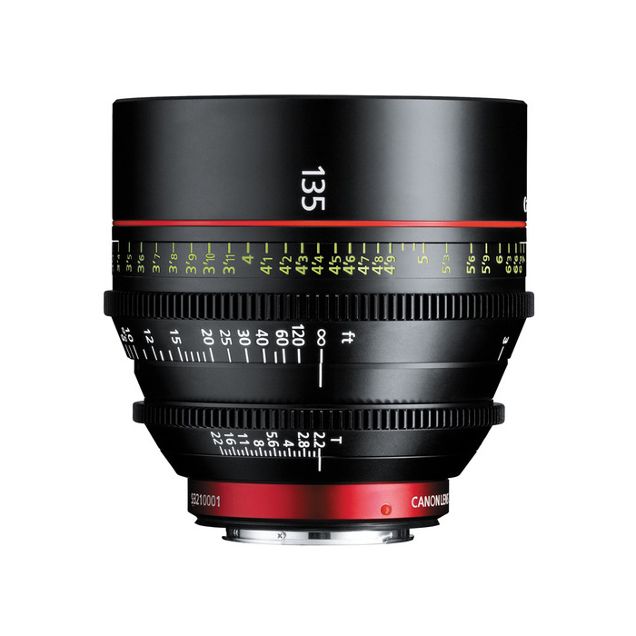 The CN-E135mm T2.2 L F lens is designed for use with EF mount cameras with either full frame 35 mm or Super 35mm-type sensors – perfect for Cinema EOS cameras as well as Canon's range of EOS DSLRs. Contacts on the EF mount facilitate communication between camera and lens for recording of metadata, and other functions.