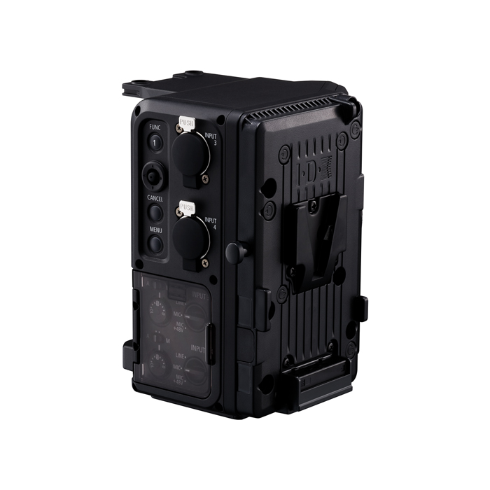 Denne enhed tilføjer Genlock/SYNC, REMOTE B (RS-422), Ethernet, 2x XLR-terminaler, en V-mount batteriplade, et 12-benet objektivstik og DC OUT 24 V-2 A-understøttelse, der monteres på kameraets udvidelsesterminal.