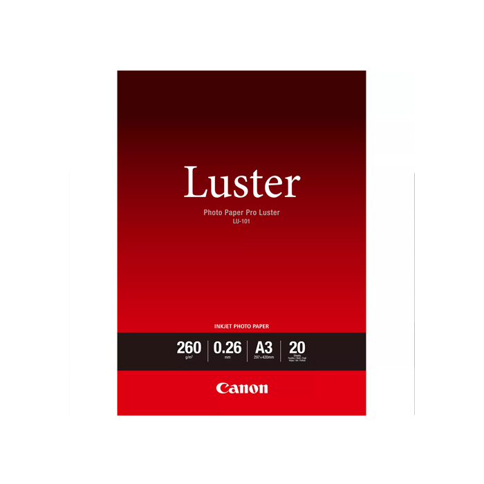 Photo Paper Pro Luster, der er optimeret til brug sammen med Canons PIXMA Pro-fotoprintere, giver enestående billedkvalitet og længere levetid. Når det bruges med originalt Canon LUCIA- eller ChromaLife100+-blæk, beskyttes fotos mod nedbrydning forårsaget af gasarter og lys, for at beskytte værdifulde minder, så du trygt kan vise eller sælge dine billeder.