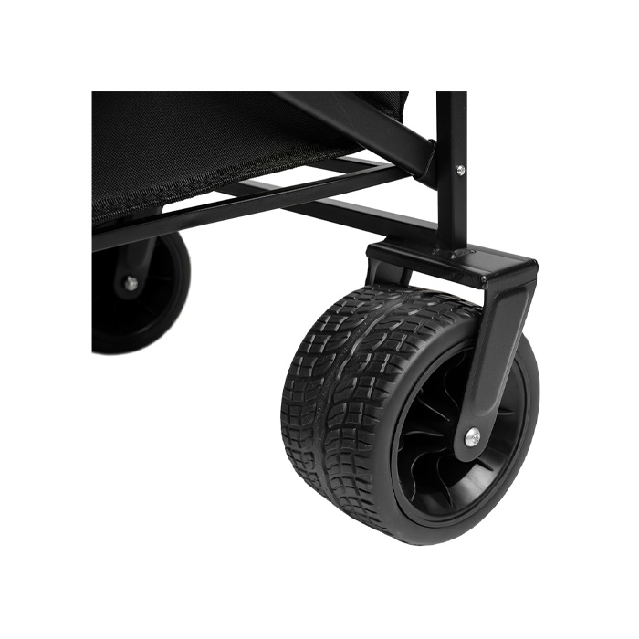 With its 360-degree rotating wheels, it is super flexible and manoeuvrable. No matter which way you steer, the wheels swivel with you. You can easily lock the Trolley by locking the front wheels. The PVC wheels make it easy to take the trolley across different types of terrain.