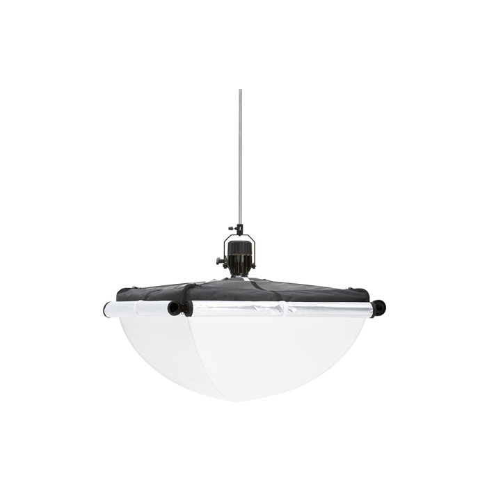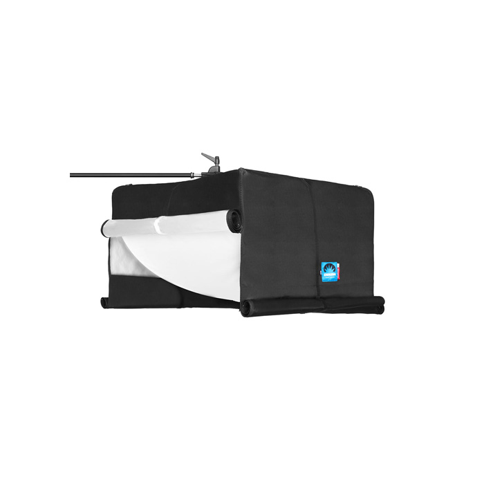 Det medfølgende skørt giver mulighed for at styre lysspredningen. Med justerbare lynlåse og velcrolukninger på alle fire sider kan skørtet rulles op eller ned, så lyset kan justeres fra en rundstrålende lyskilde til en direkte nedadgående belysning.