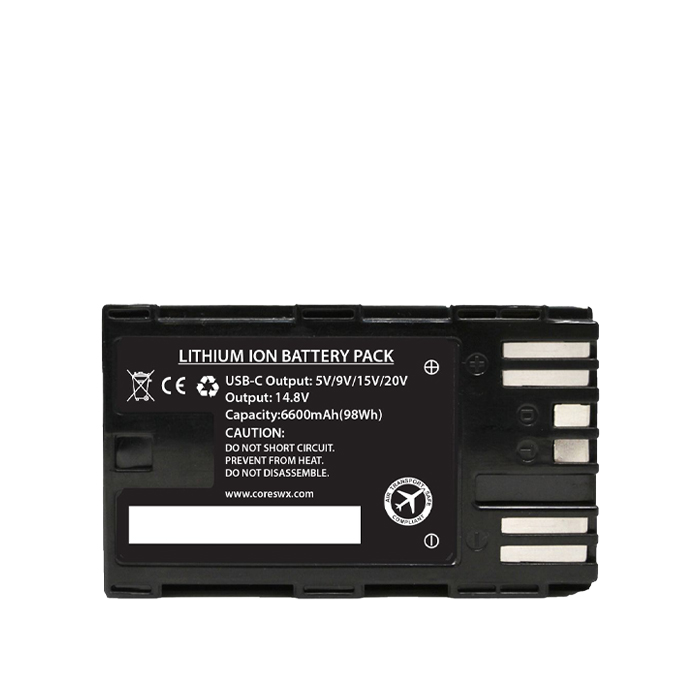 The Nano-C98X 14.8V Battery from Core is the ultimate power solution designed for Canon Camcorder users seeking enhanced power capabilities. Engineered to deliver unwavering reliability to your equipment, it boasts an array of impressive features. Its P-Tap and USB-C PD outputs enable simultaneous power for production accessories, making it an essential companion for professional videographers.