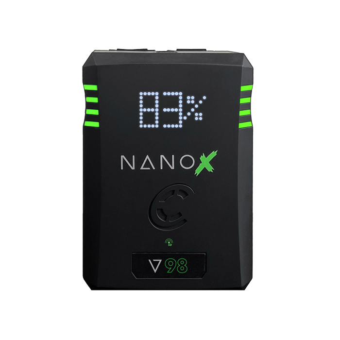NANO X boasts a wrap-around LED gauge for effortless battery status monitoring from any angle on set, complemented by up to 100w USB-C Power Delivery integration for streamlined workflows and compatibility with production gear. Elevate your production with NANO X – where power merges with portability, reliability intertwines with innovation, and creativity transcends limits.