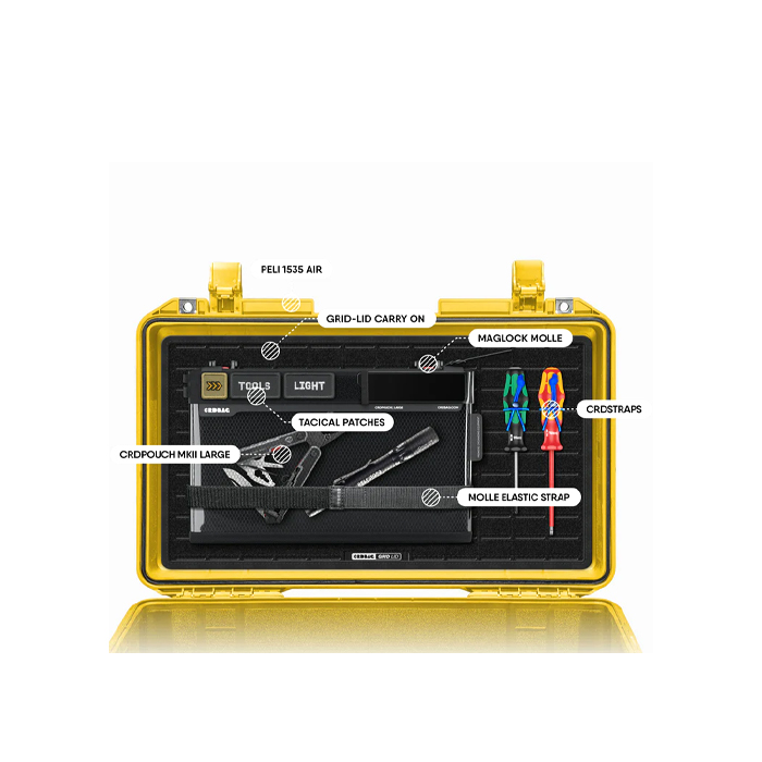 Maximize the functionality of your carry-on hard case with the CRDBAG GRID-LID, a modular and adaptable lid organizer designed for professionals. By utilizing the unused lid space, the GRID-LID transforms your case into an efficient and customizable storage solution.