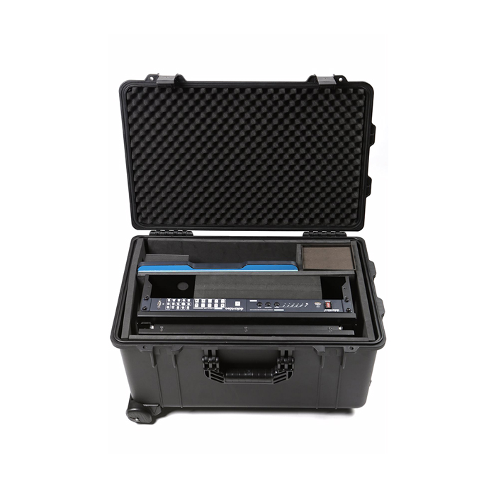 Kompakt, fleksibel studie kit monteret i metal-rack og leveres i en hardcase rullekuffert.