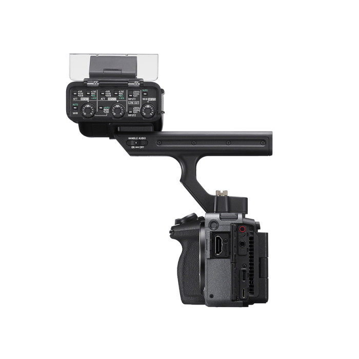 De to XLR-lydindgange muliggør lydoptagelse i høj kvalitet. Med en valgfri XLR-mikrofon kan digitale lyddata overføres direkte til kameraet for enestående lydkvalitet med et rent lydsignal. Andre stik inkluderer USB Type-C®, Multi/micro-USB, mikrofon, hovedtelefoner og en Multi Interface Shoe med indbygget digital lydgrænseflade.