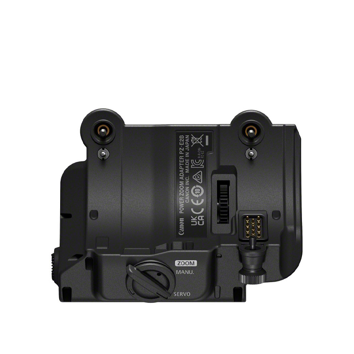 Power Zoom Adapter PZ-E2B har et 20-benet fjernstik, der gør det muligt at føje kompatible Zoom/Focus Demands til studie- eller store produktionsmiljøer. Den er også kompatibel med Canons Zoom Servo Grip ZSG-C10 til ENG-lignende betjening. Understøttelse af VFX og Virtual Productions er gjort mulig via objektivets metadata-output i realtid fra det 20-benede stik.