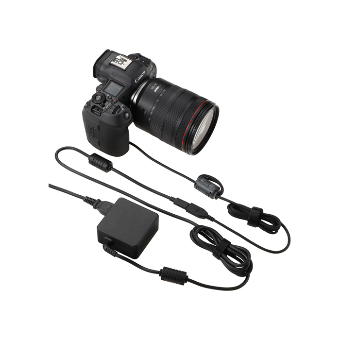 Successor to the DR-E6, the DR-E6P is a DC coupler compatible with all cameras powered by the LP-E6 series batteries. It is the first DC Coupler compatible with a USB-C connection and comes with a rated output of 10.0 V DC and an allowable current of 6 A; the DR-E6P ensures an optimal power supply for the camera and load conditions used.