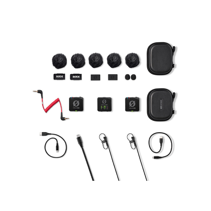 The Wireless PRO comes with everything you need to get set up and recording wireless audio right out of the box. Included are two professional Lavalier II microphones that are perfect for recording on-screen talent, as well as furry windshields for outdoor use, a pair of MagClip GO to attach your transmitters anywhere, a smart charging case and a handy accessory pack to store your lavs, cables and clips.