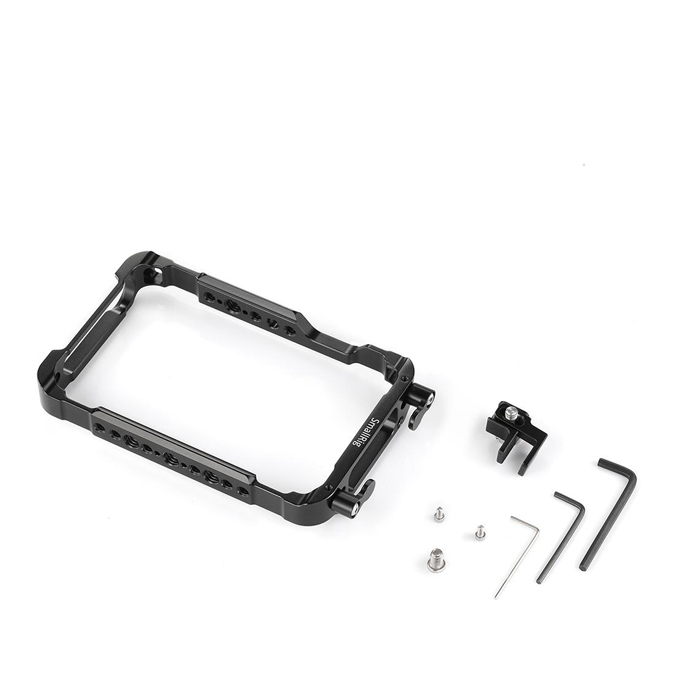 SmallRig 2209 cage was co-designed with Atomos to provide an additional protective exo-skeleton for the monitor, with a wide range of industry standard mount points. The cage mounts to the monitor by a 1/4’’-20 screw on the top and 2 M3 screws on the left side. Across the top and bottom, the cage features multiple 1/4’’-20, 3/8’’-16 holes, and an ARRI locating mount point on the base.
