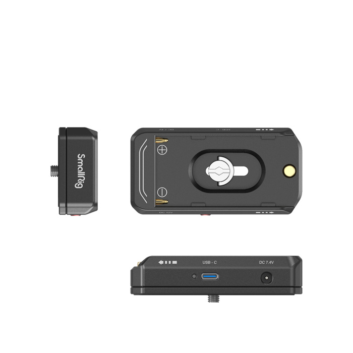 The NP-F Battery Plate is made of aluminum alloy with gold-plated electrical contacts to be more durable and conductive. The plate has a self-locking button for quick and secure battery installation and a 1/4''-20 threaded hole for easy attachment to the cage. There are 36W 7.4V / 12V DC output on its sides and a 36W USB-C port, which can output current or charge an NP-F battery. All ports have short circuit protection and automatic wake-up and sleep functions. In addition, this item features LED lights indicating USB charging and discharging state, battery connection, and battery life.