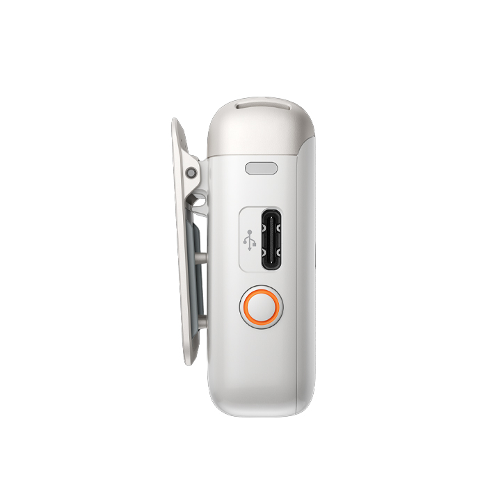 You can choose between two stylish transmitter colors: Shadow Black and Pearl White. The Shadow Black adds a discreet, high-tech appearance to your Mic 2 setup, while Pearl White offers an elegant alternative for those seeking a chic colorway.