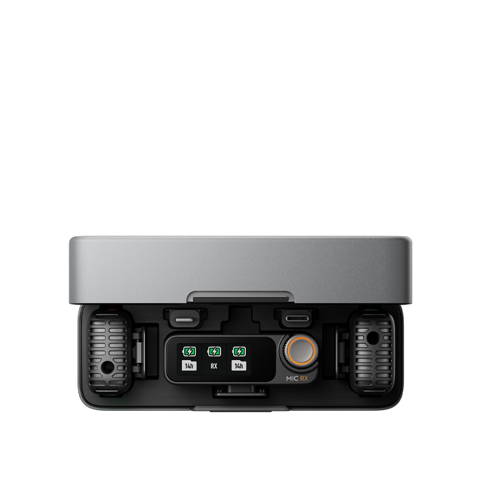 DJI Mic 2 automatically powers on as you open the charging case. This smart case automatically pairs the receiver and transmitters while charging them, so you can get started as soon as you open it up. It also contains both USB-C and Lightning adapters, providing hassle-free setup with your preferred recording devices.