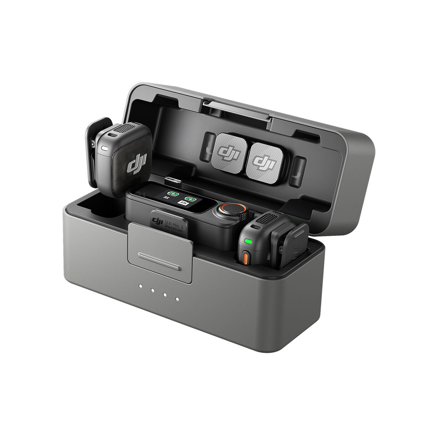 DJI Mic 3 er et ultralet, trådløst mikrofon system med kraftfuld ydeevne og uovertruffen alsidighed. Den bygger videre på tidligere generationer af DJI Mic-serien og understøtter op til fire sendere og otte modtagere, hvilket gør multikamera-produktioner og gruppeoptagelser enkle. For første gang introduceres Adaptive Gain Control, som automatisk forhindrer clipping eller dynamisk balancerer lydstyrken. Derudover tilbyder Mic 3 tre stemme-tone-presets, to-niveaus støjreduktion samt dual-file 32-bit Float intern optagelse med 32 GB lagerplads.