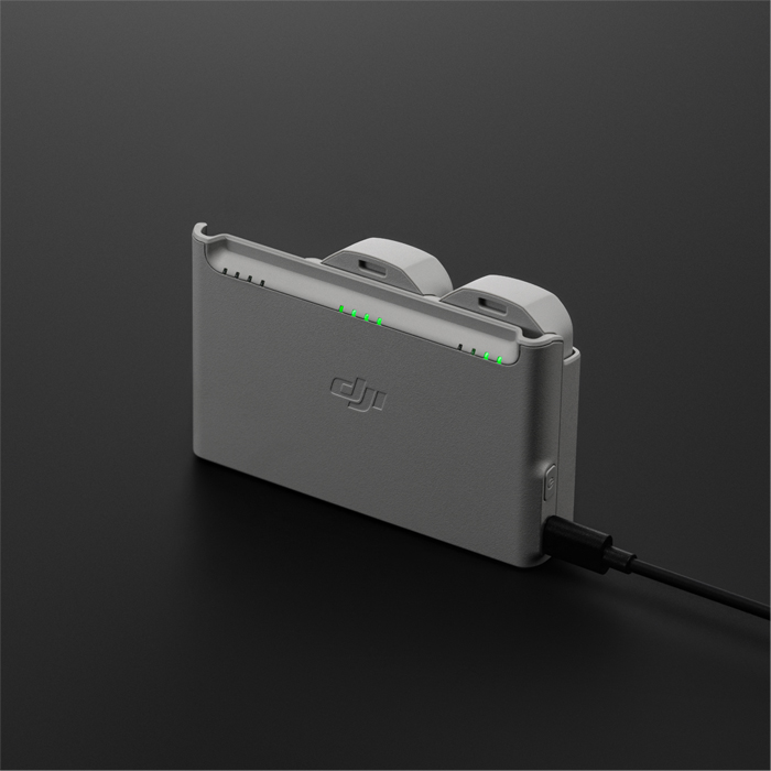 DJI Neo's Two-Way Charging Hub can fully charge three DJI Neo Intelligent Flight Batteries simultaneously from 0% to 100% in approx. 60 minutes. Charging three batteries at a time, eliminating the hassle of charging batteries one by one.