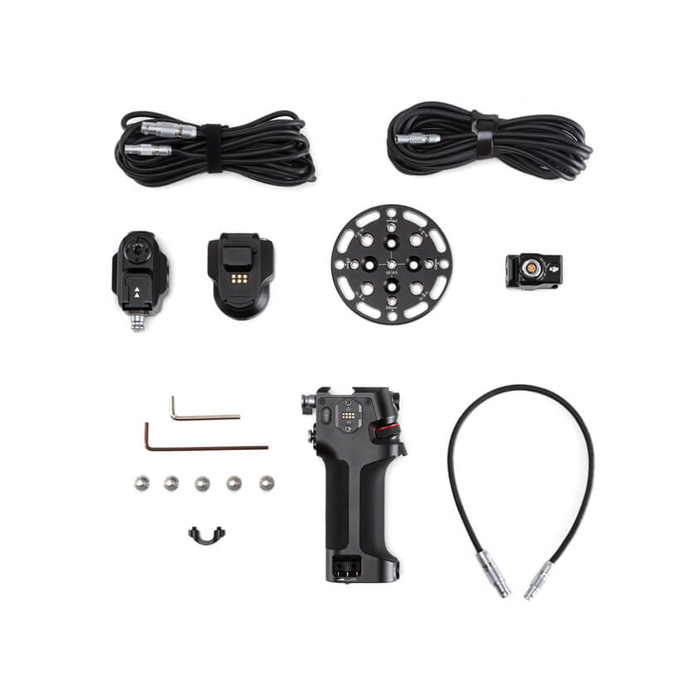The DJI Ronin Expansion Base Kit makes it possible to mount and control DJI RS 2 / RS 3 Pro in a jib, car, slider, cable cam, and other platforms. This kit includes a DJI Ronin Tethered Control Handle for extended wired control of camera focus and parameters, camera shutter, and gimbal movement.