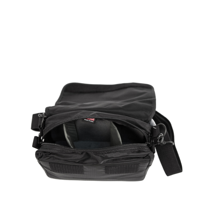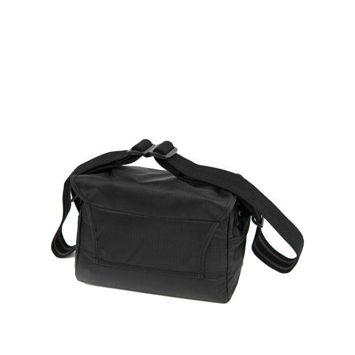 The black Domke F-5XB Shoulder/Belt Bag Limited Edition can be used as a camera bag, or remove the Gripper shoulder strap and thread it through the belt loop for an instant waist/hip pack. The bag can hold an SLR or rangefinder camera, one or two lenses, filters, film and accessories. There is a zippered, padded main compartment lined with touch fastener material, a long thin compartment on the front of the bag, and a U-shaped pad that makes a compartment for papers.