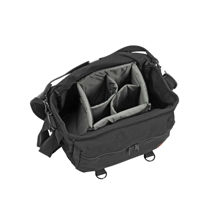 The Domke F-6 Little Bit Smaller Shoulder Bag is a canvas shoulder bag made to carry a film or digital camera and lenses. It is constructed of tough, breathable, compressible, waterproofed canvas made to hug the shooter's hip closely. It provides sensible access to the equipment, with great space-to-size ratio.