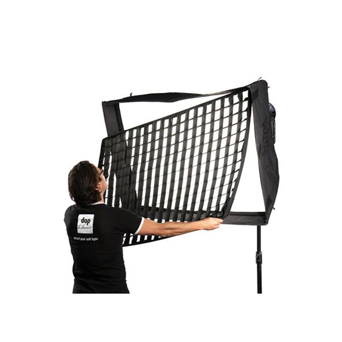 Ved at udnytte DoPchoice's patenterede, selvstrammende Snapframes og hurtige opsætningsmekanisme folder Snapgrid sig automatisk ud fra sin kompakte opbevaringspose og er klar til montering. Den fastgøres nemt på den indvendige kant af de fleste populære softboxe eller spændes sikkert fast til en Frost frame eller panellys ved hjælp af robuste elastiske stropper.