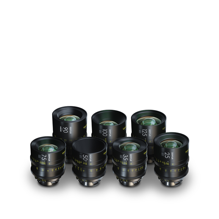 Cinematic capturing beyond full frame (46.5m). Compact and potable. Convenient for documentary shooting. The kit includes 25mm, 35mm, 50mm, 75mm, 100mm, 125mm T2.1 and Macro 90mm T2.8.