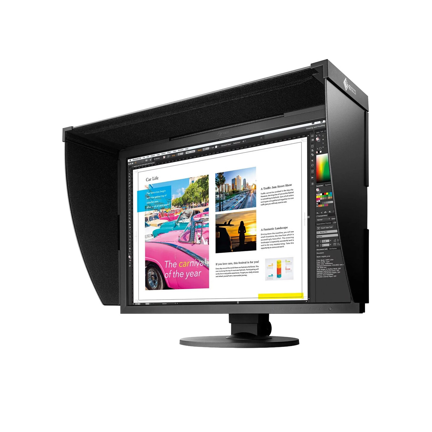 Lysafskærmningen reducerer direkte lysindfald på skærmens overflade både ovenfra og fra siderne. Indersiden af EIZO’s lysafskærmning er beklædt med ikke-reflekterende materiale, som effektivt minimerer genskin forårsaget af refleksioner.