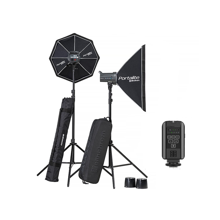 D-Lite RX 4 To Go Sæt indeholder 2 stk D-Lite RX 4 (400 Ws), 2 stk Portalite Softbokse 66x66 cm, 2 stk stativ, tasker samt Skyport Transceiver Speed.