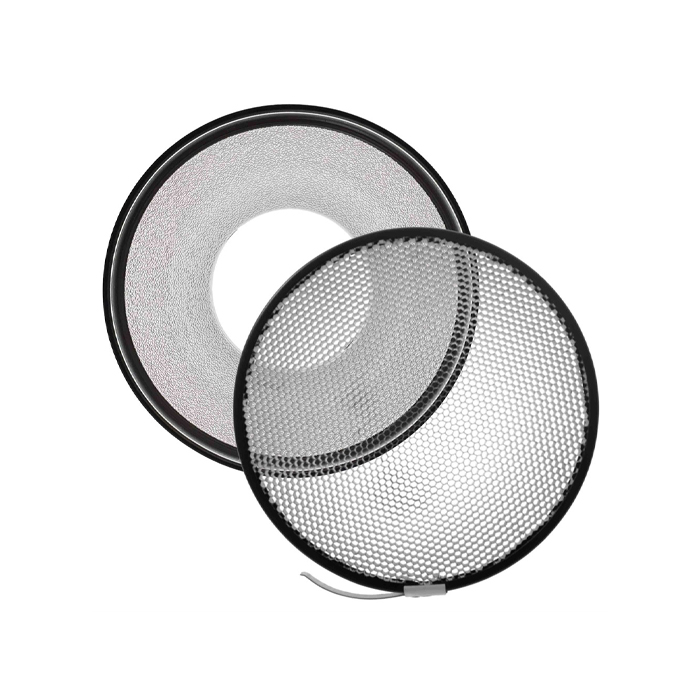 Additional grids of 8°, 12° and 20° are available, and this reflector can be used with the Barndoor Kit and umbrellas to further shape light and add filters.