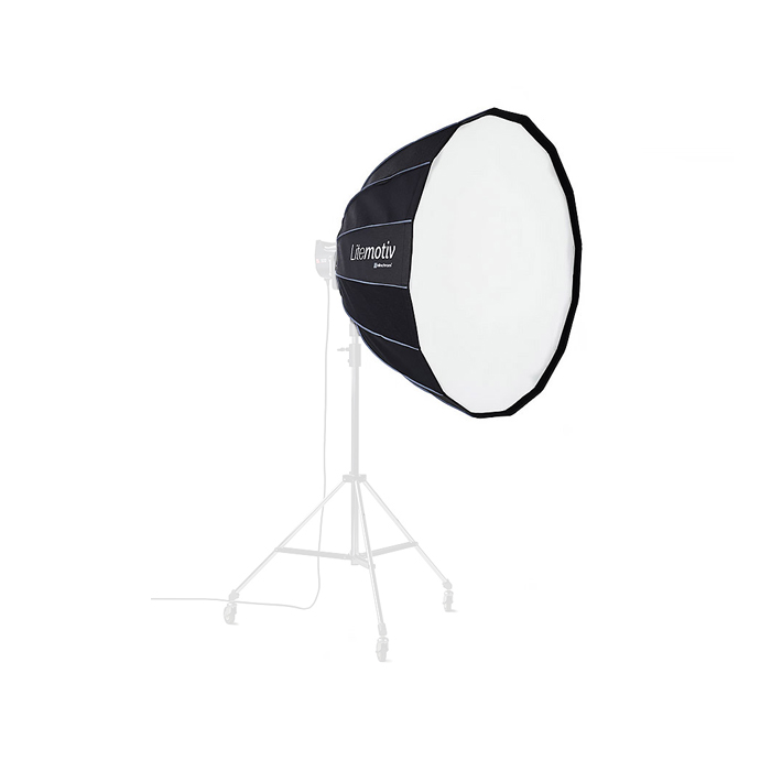 Litemotiv 120 cm har en rund, dyb form ligesom Depp Octa 100. Designet i kombination med den dobbelte diffusionsdug samt placeringen af paraplymountet gør, at lysbilledet fra Litemotiv kan forandres dramatisk. Med diffusionsdug giver Litemotiv et stort, blødt lys med langsom overgang imellem højdepunkter og lavpunkter. Meget velegnet til eksempelvis portræt og gruppebilleder.