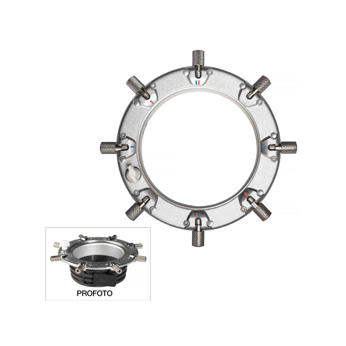 EL26574 – The Elinchrom Rotalux Speedring for Profoto is required for all 11 Rotalux shapes and sizes, and is compatible with most Profoto heads.