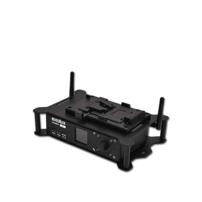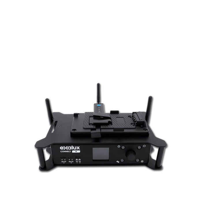 Exalux™ Connect + er en dual-band Wi-Fi til DMX-gateway, der muliggør trådløs lysstyring via Art-Net-kompatible apps som BlackOut, DMX Connect+ og Luminair.