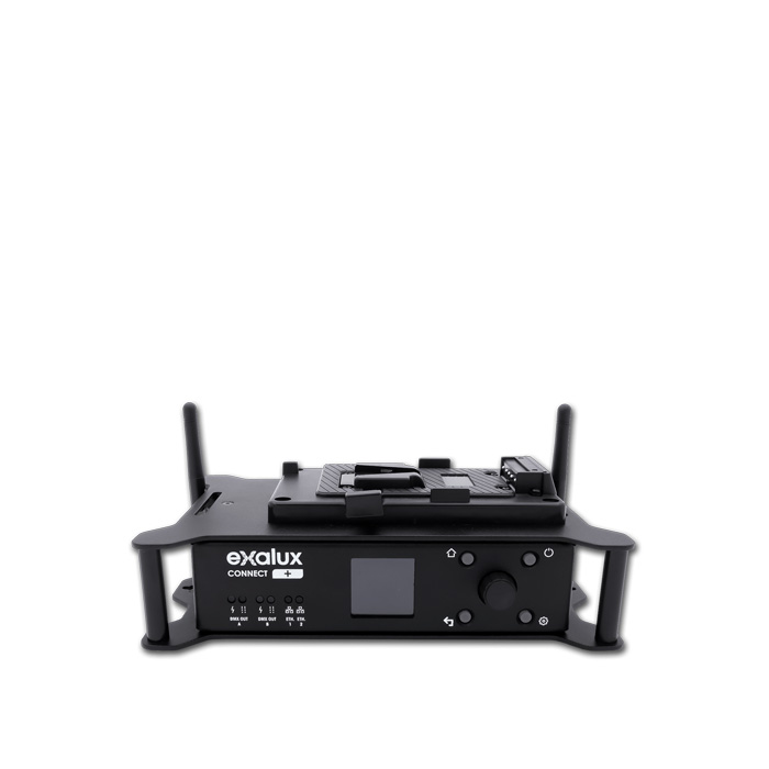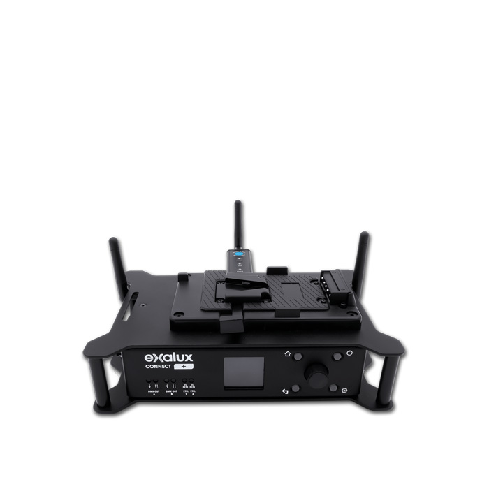 Exalux™ tilbyder Connect+ Full Wireless DMX 2U Kit, en alt-i-en-løsning til krævende gaffere, der ønsker at styre LumenRadio CRMX™-kompatible lysarmaturer trådløst fra en iPad.