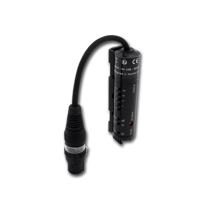 Den tilpasser sig alle lysarmaturer på markedet, uanset orienteringen af deres DMX-connector.