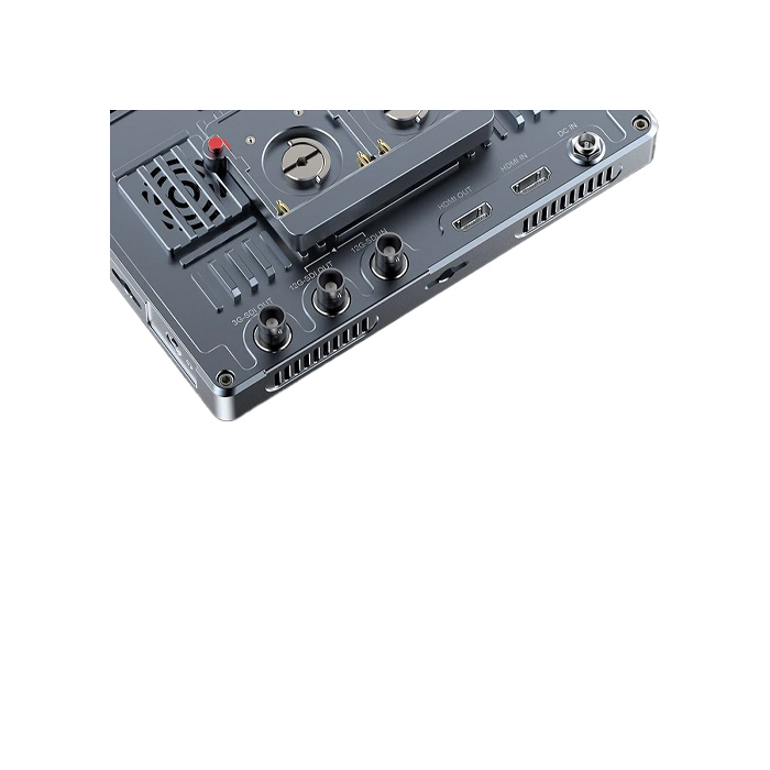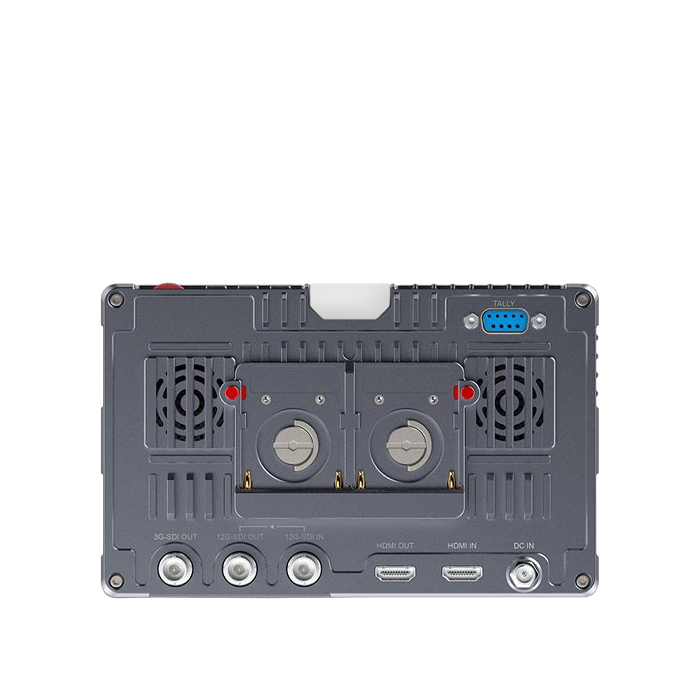 You can connect to DC power input to get continuous power or use the standard F970 dual battery plate to install NP-F series battery for mobile application. Install one F970 battery (6600mah) last for about 3 hours. The upper right corner of monitor will display battery level after the battery installed. Two batteries are installed at the same time, when one is running low, you can quickly switch to the other one without worrying about losing power midway. The dual battery plate is removable. An option if you wish to power the monitor via a v-mount battery.