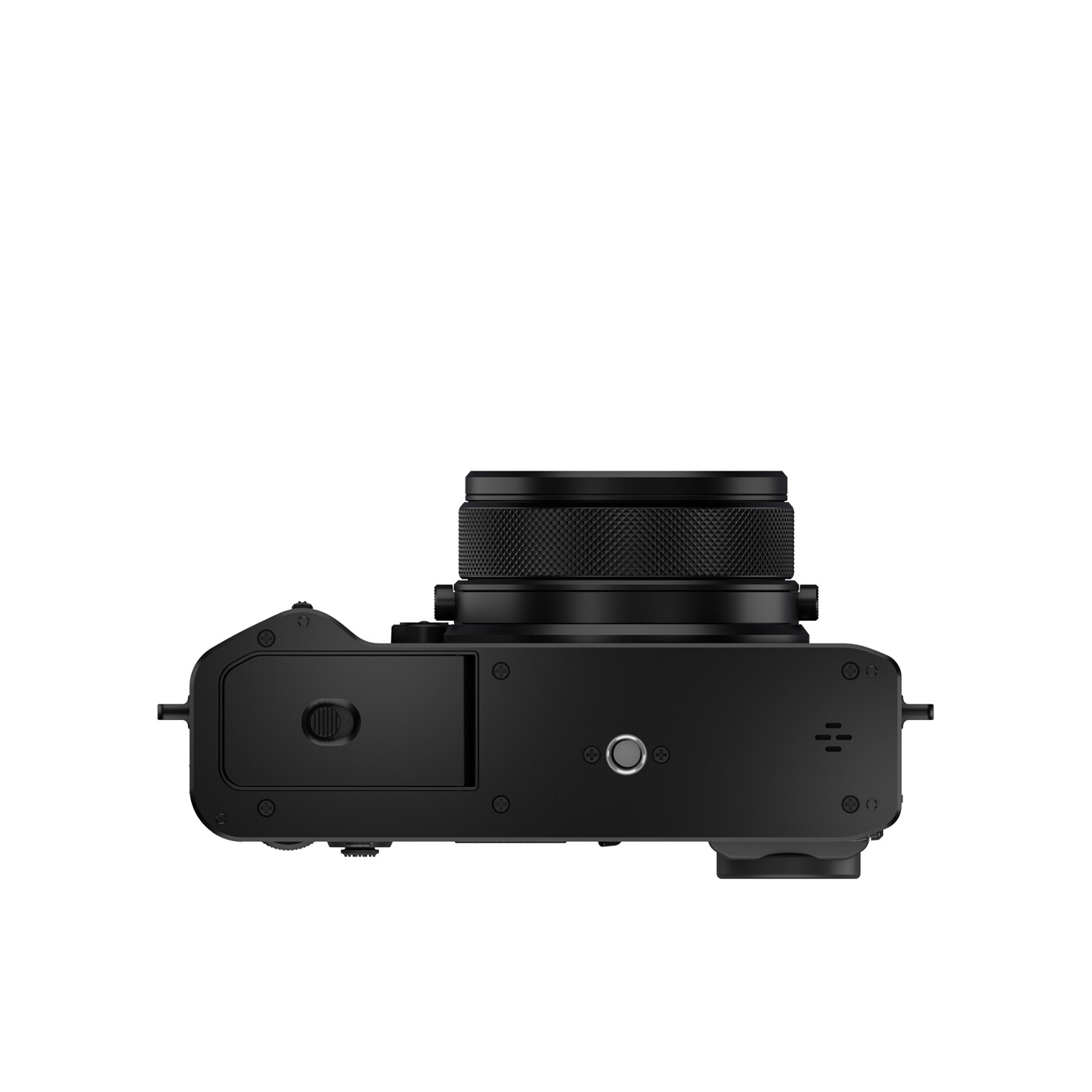 GFX100RF har et fast objektiv med en brændvidde på 35mm (modsvarende 28mm i 35mm formatet) med en maksimal blænde på f/4. Denne alsidige brændvidde gør kameraet mere universelt og passer perfekt til et utal af motiver fra landskab, rejsefotos, street fotos til portrætter og reportage. Ved at vælge et fast objektiv med centrallukker blev det muligt at mindske kameraet backfocus og optimere placeringen af objektivet og kamerakomponenter for derved at opnå et, for sin klasse, fantastisk kompakt kamera.