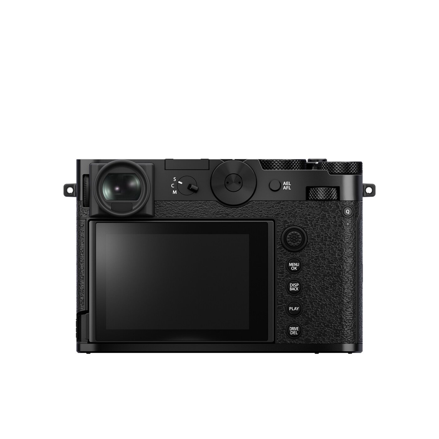 GFX100RF er udstyret med en højopløst elektronisk søger (5,76 millioner punkter) med en forstørringsgrad på (0,84). Søgeren har en høj opdateringshastighed for at kunne følge med hurtige motiver i bevægelse, har bedre udsyn og mindre distortion når øjet forskydes foran søgeren. Kameraet har vinklingsbar LCD-skærm på 3,15 tommer med en opløsning på 2,1 millioner punkter og et nyt udsnit der bedre rummer de digitale symboler og ikoner der kan ses og vælges til på skærmen for at matche skærmens 3:2 billedudsnit.