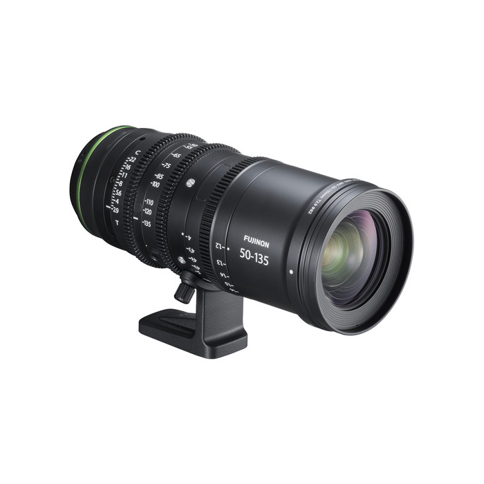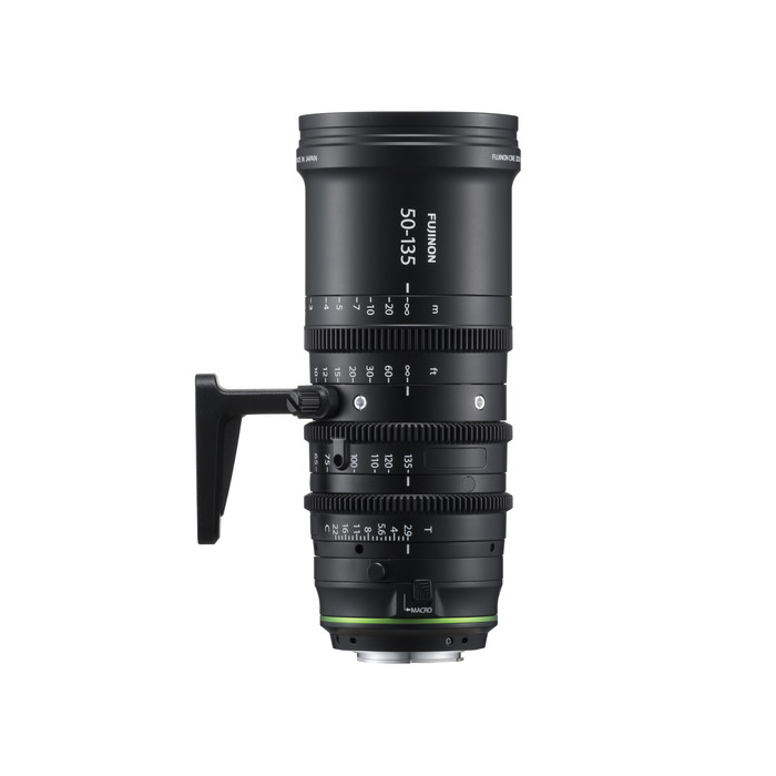 The Fujinon MK50-135mm T2.9 Lens in X-Mount is a lightweight cine-style zoom lens for X-mount cameras with a Super 35mm-sized sensor. It features a mechanical design with three independent lens control rings: focus, iris, and zoom.
