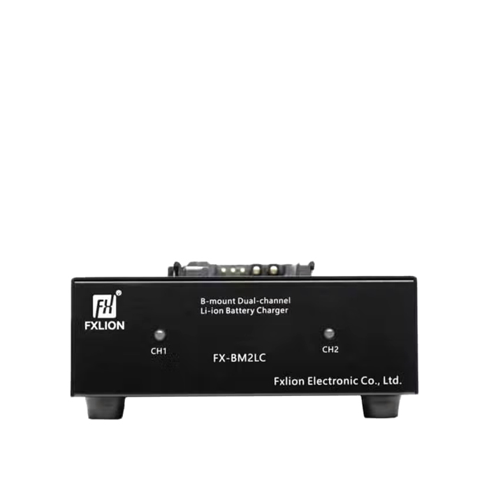 This B-Mount Charger features two channels. On top there is a handle to carry it around easily. The flat design allows for a small footstep. With 2 Amps charging current, your batteries will be charged within a medium short time. For faster charging, take a look at FXLION’s 4-Channel B-Mount Charger. Charging works simultaneously for all channels.