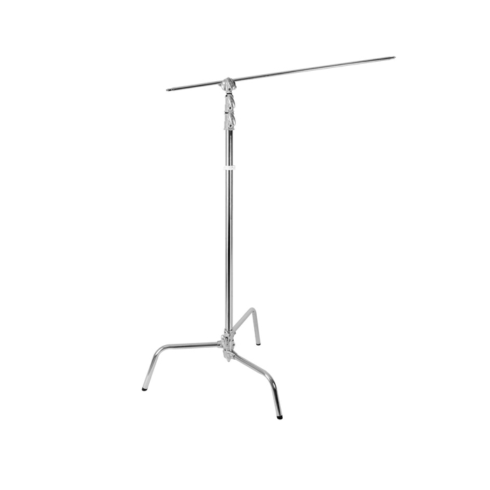 The silver-finished, 270cm C-Stand with Arm, Grip Head & Removable Turtle Base from Godox combines a durable C-stand with a 127cm arm and grip head set for versatile use, inside or outside of the studio.