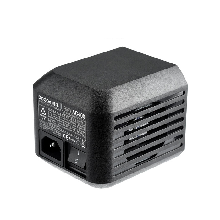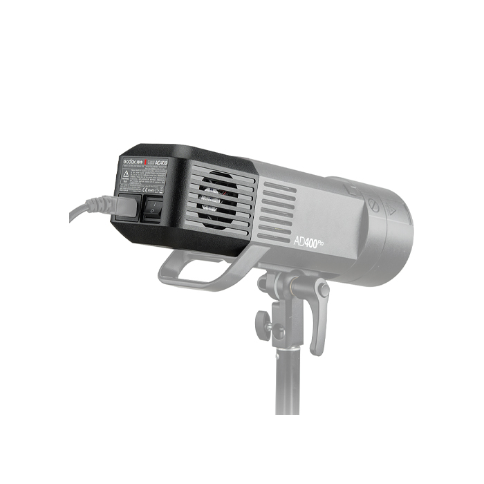AD400Pro AC Adapter is equipped with active cooling (fan) and a separate switch. In addition, it also has a mechanism to protect against damage due to overheating. Perfect for using indoors. Reduces the risk of the battery running out during shooting.