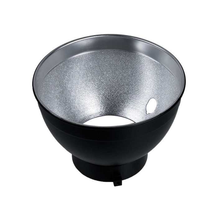 The 18cm Standard Reflector from Godox is an aluminum modifier that can be used on its own or thanks to its specialized accessory hole, that is compatible with umbrellas. The reflector is compatible with Godox AD600B and AD600BM flash heads as well as any other head that utilizes this widely used mount.