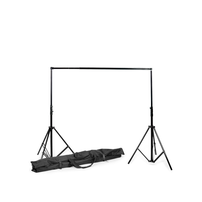 The background system is designed for versatility and ease of use. The patented crossbar connection ensures effortless installation and disassembly, so you can easily use the background system in different locations. It also prevents sagging in the middle. The background system comes with a handy carrying case.
