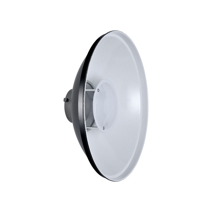 A favorite of fashion and portrait shooters, the White 55cm. Beauty Dish Reflector from Godox bounces the light off a centrally positioned deflector and is directed to fill the white reflector interior. The result is a signature soft look but with an edge of crispness (ideal for hair and makeup), that you can't get from umbrellas and softboxes.