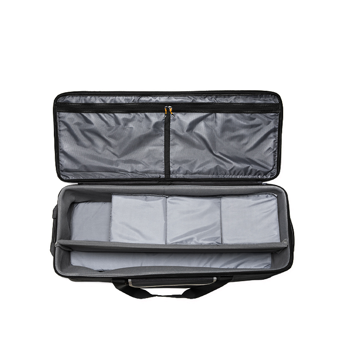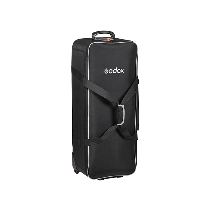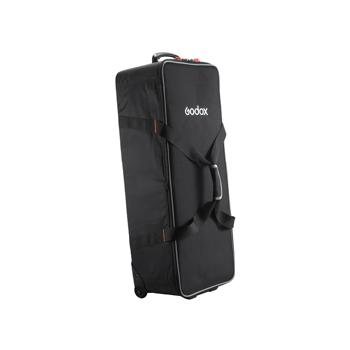 With dimensions of 94 x 34 x 25 cm, the Godox CB-06 Hard Carrying Case with Wheels from Godox can hold a three-light kit with all the necessary accessories. It has a similar design to that of travel suitcases, with inline skate wheels and a top handle that allow you to easily roll the bag along in smooth surfaces.