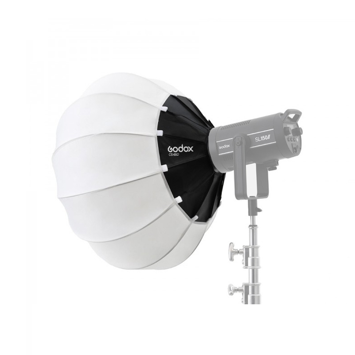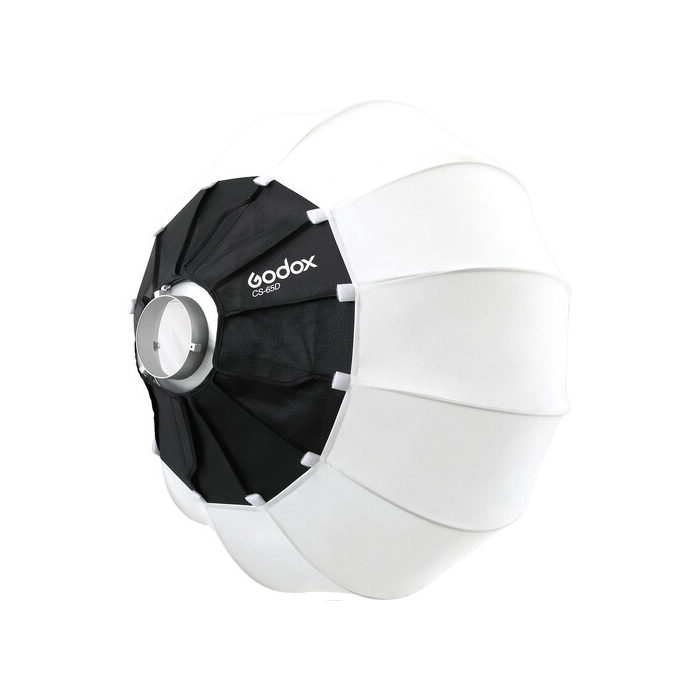 Lantern softbox Godox CS-65D with umbrella design and Bowens type mount. The diameter of 26 inches (65 cm) ensures mobility and comfort of work. The set includes a skeleton, outer material and a durable case.