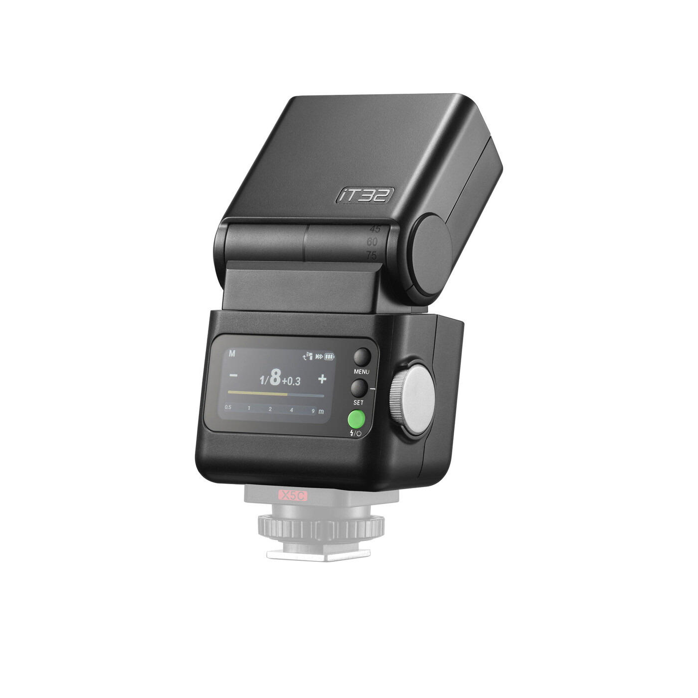 X5 fungerer både som hotshoe-mount og trådløs transmitter og gør overgangen mellem on-camera og off-camera brug problemfri. Når den er monteret på iT32, fungerer den som hotshoe til on-camera fotografering; når den afmonteres, skifter den automatisk til trigger-tilstand og styrer iT32 eller andre Godox Wireless X System-blitze trådløst.