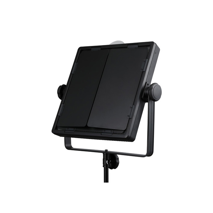 This video light is rated for output up to 4800 lux at 3.3' and 4200K, 2200 lux at 3.3' and 3300K, and 2600 lux at 3.3' and 5600K; drawing a maximum of 70W of power during use. A yoke with a standard light stand receiver and locking knob supports the LED1000Bi II Bi-Color DMX LED Video Light and its design also incorporates a built-in filter slot for its included diffuser. While an AC adapter is provided for in-studio use, separately available Sony 14.8V BP-L V-mount batteries can be used to provide power while on location.